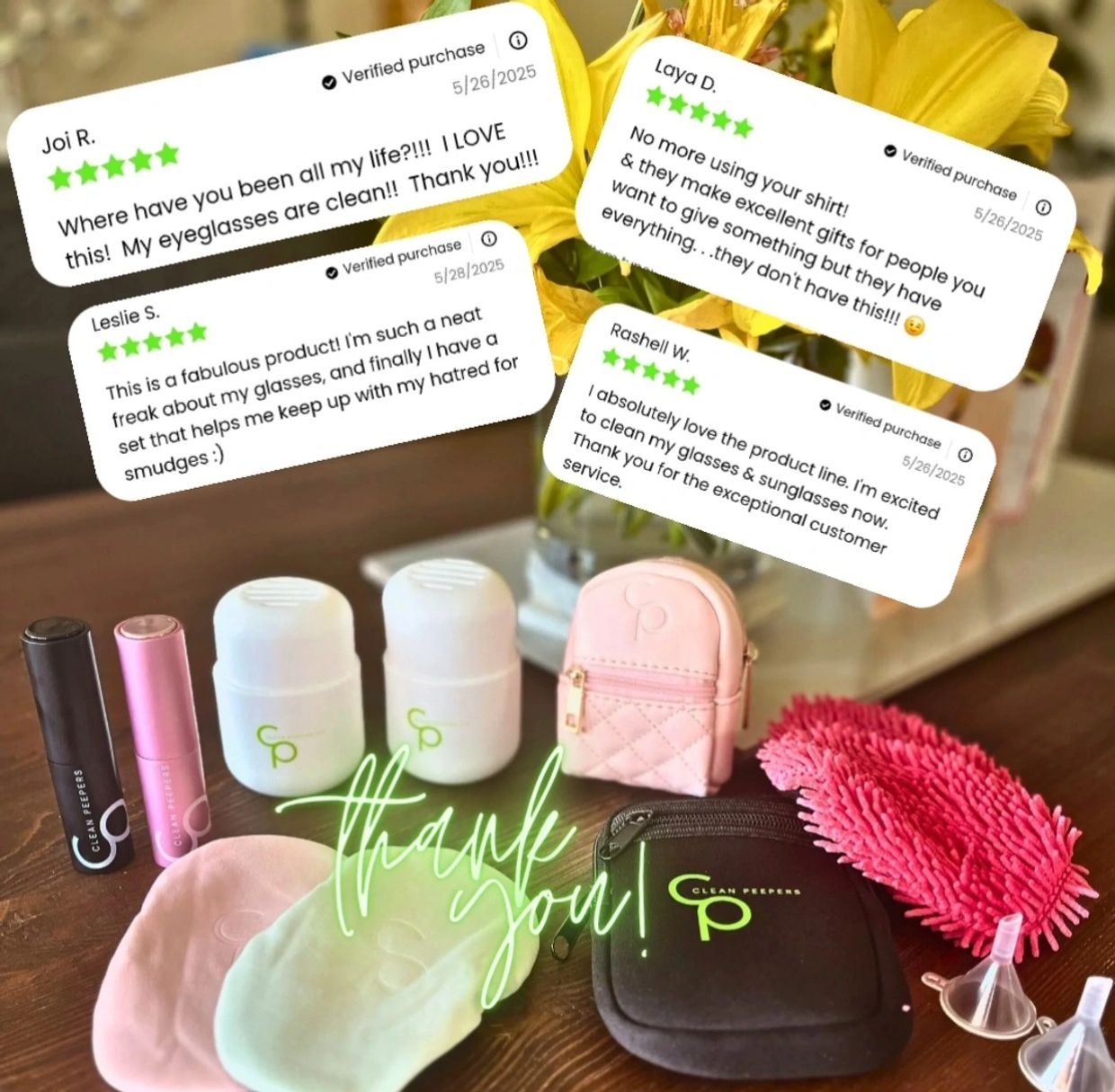 At Clean Peepers we design eyeglass cleaning products to address the frustration everyday eyeglass wears experience trying to get their glasses clean.